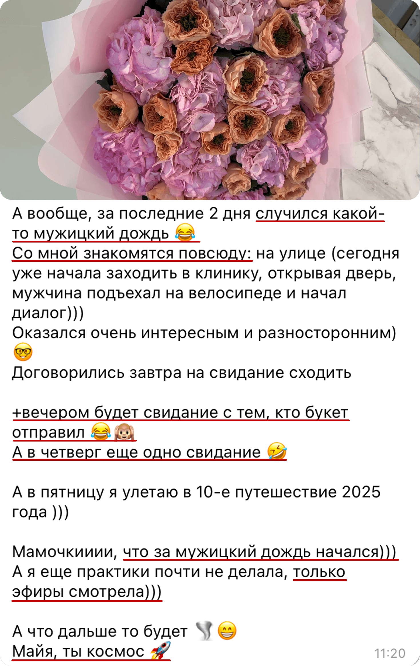 Закрытый чат с Маей и общение в течение дня